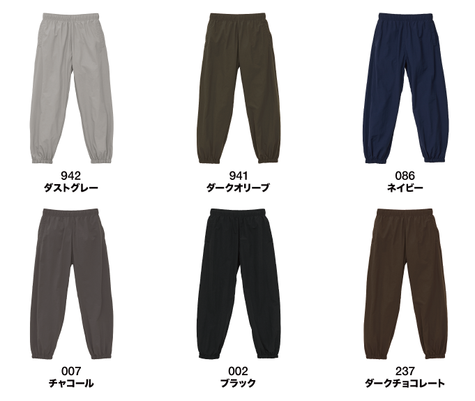 タフなナイロンをコットンのように加工して織り込んだ、やわらかな生地が魅力のトレーニングパンツ。 横から見たときに膨らむようなバルーンシルエットで大きめなトップスとの相性を最大まで引き出した魅力的なアイテム。 6色×4サイズ展開です。 オールカラー 3,490円(税込) 【素材】ナイロン100%