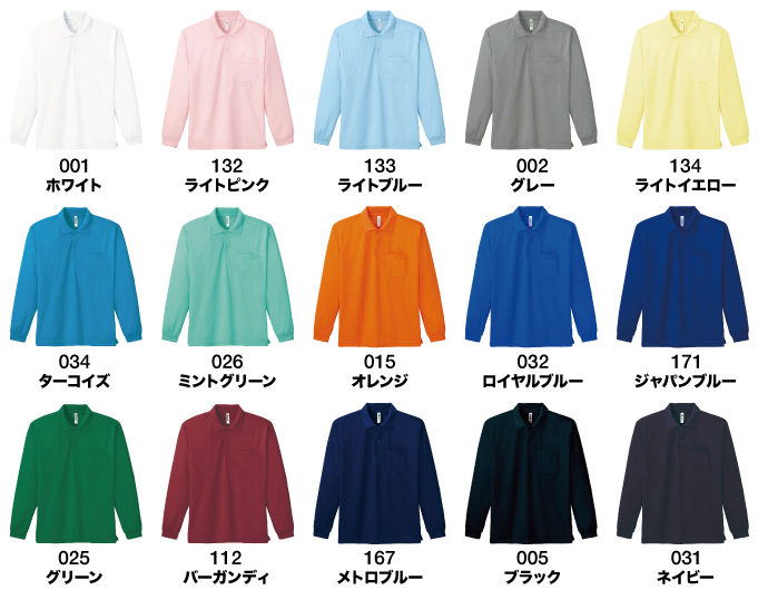 幅広いTPOに対応す長袖ポロ 15色×8サイズ展開です。 オールカラー 1,050円(税込) / 3L〜5L 1,220円(税込) 【素材】 ポリエステル 100%